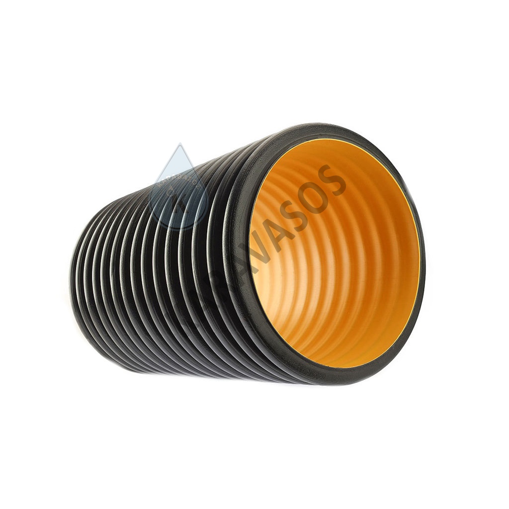 Σωλήνα διπλού τοιχώματος, κυματοειδής εξωτερικά και λείος εσωτερικά απο ειδικά σταθεροποιημένες πρώτες ύλες παλυαιθυλενίου υψηλής πυκνότητας (HDPE) ή πολυπροπυλενίου (ΡΡ) για την αποχέτευση δικτύων χωρίς πίεση.