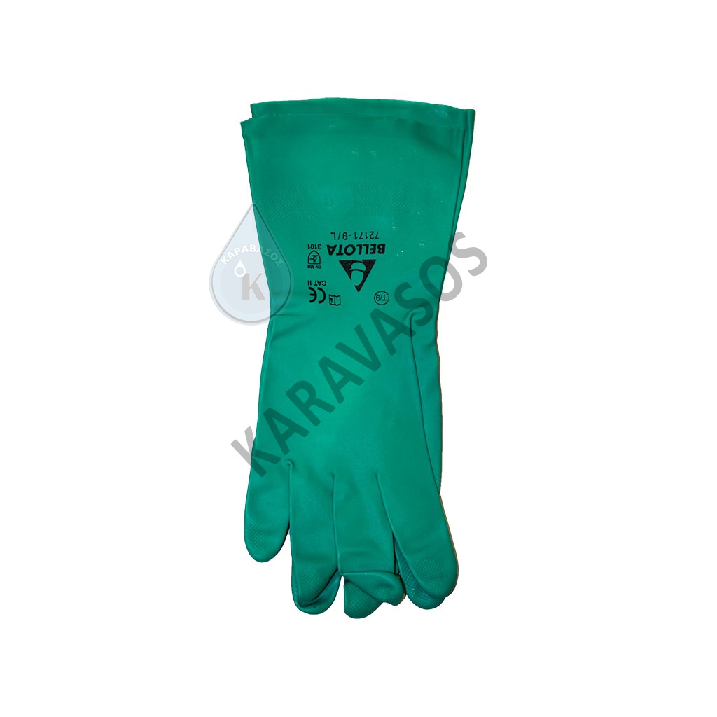 Γάντι πράσινο χημικό νιτρίλιο Bellota 72171 Νο9. Πιστοποιημένο ένταντι μεθανόλης, Ν-επτανίου, υδροξειδίου του νατρίου, θειϊκού οξέος.