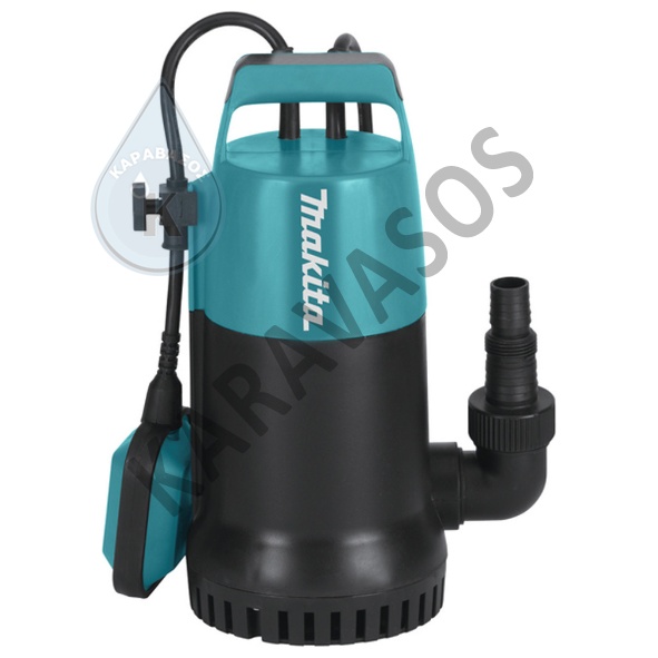 Αντλία υποβρύχια ομβρύων Makita PF0800, κατάλληλη για αναρρόφηση σωματιδίων μεγέθους έως 5mm, με επαγωγικό μοτέρ και βάθος βύθισης έως 5m, ιδανικές για το άδειασμα πλημμυρισμένων χώρων ή δεξαμενών, αποστράγγιση καθαρού νερού και την άρδευση του κήπου.